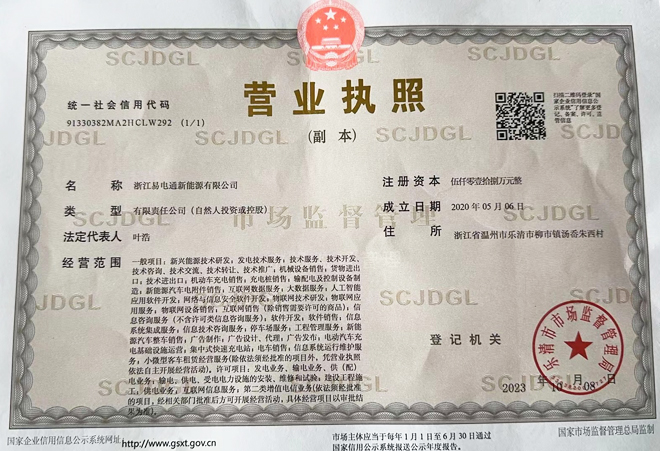 > 浙江易電通新能源有限公司成立于2020年5月,注冊資金5018萬元